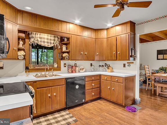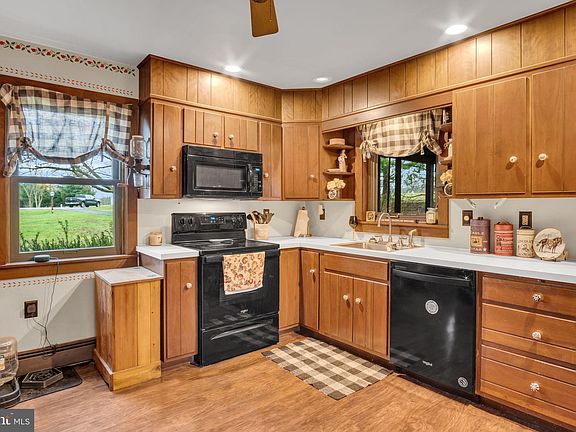 Offer has been received. Deadline for offers is 7:00 PM on 4/4/ 24. This is a perfect cul-de-sac location on nearly 2 level acres. The salt box style home has 3 bedrooms and 1 full and a half bath. One of the bedrooms is on the main level with an attached half bath. Both the main bath and the ½ bath have been upgraded. The screened porch is a perfect spot for relaxing. There is an oversized detached two car garage with overhead storage. The RV shed is perfect for any type of outdoor equipment. The basement with laundry can be easily finished to add additional living space. As supplemental heat to the oil furnace, there is a coal stove in the basement and a pellet stove in the living/dining area.