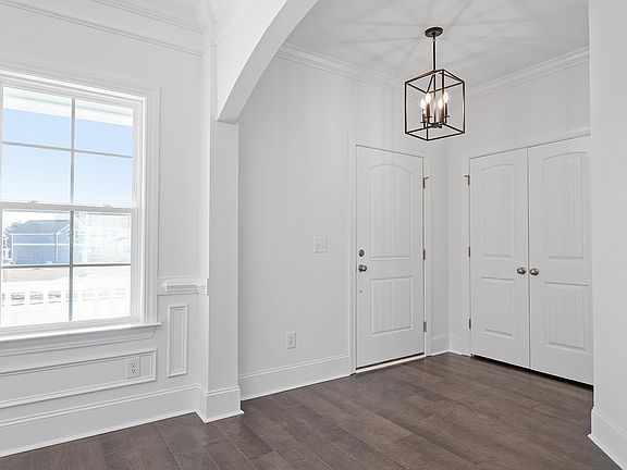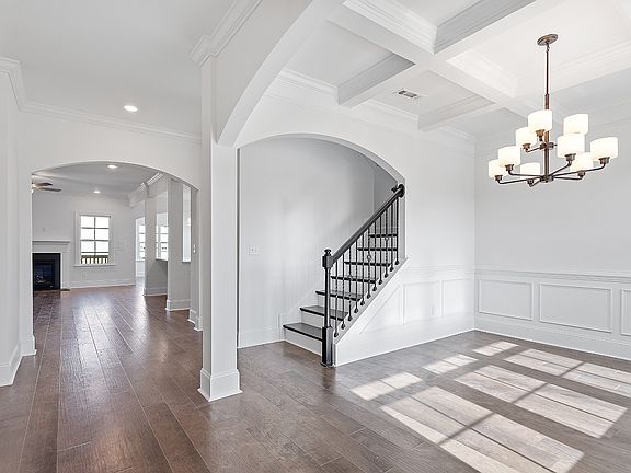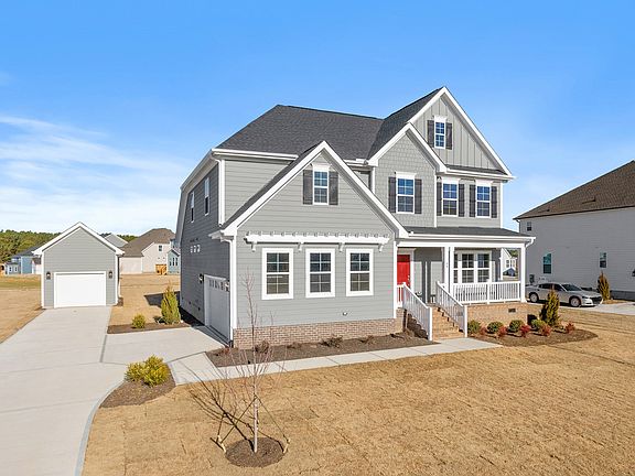 A front porch waits for your rocking chairs, home is here. Welcoming front entry: step inside. Imagine meals in a detail oriented formal dining room w/wainscoting & coffered ceiling. Chef's dream kitchen complete w/pristine white quartz countertops, ss wall oven, & an enviable ss farmhouse sink. Downstairs primary showcases a spa-like bathroom w/ dual vanities & 5' tile shower. An enormous bonus room up has endless possibilities. Two car attached & single car detached garage. Home backs up to open space.