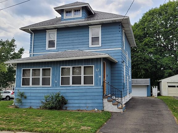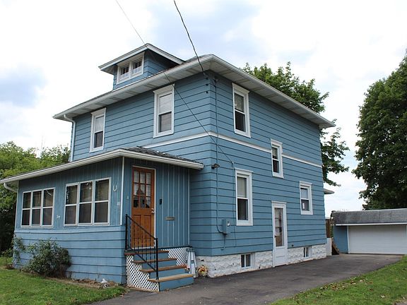 This well-maintained 2-story home is situated on a generous lot and features an oversized 2-car detached garage. The property boasts a fenced yard, a charming enclosed front porch, and a convenient rear mudroom. Inside, you'll find beautiful natural woodwork and hardwood floors on the first floor, with newer bamboo flooring on the second floor. The spacious living room flows seamlessly into the dining room and the nicely-sized kitchen. Upstairs, there are 3 bedrooms, a full bath, and a walk-up attic. The basement includes a laundry area and utility space.