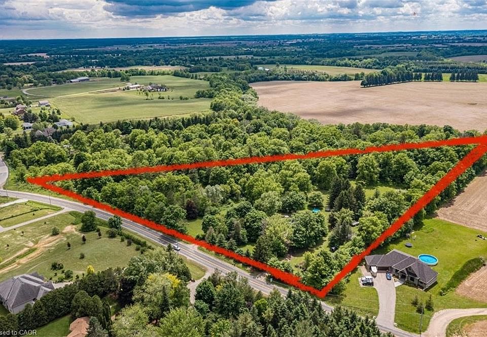Rare 6.49 acre investment, pre-approved severance, AG1 business & dual dwelling potential. Smart buy in this complex real estate Market! Welcome to a truly exceptional opportunity on coveted McBay Road in Brant County. This exclusive 6.49-acre estate blends unparalleled privacy w/ powerful investment potential, all while offering an effortless commute (minutes to Hwy 403 and Ancaster). As the land is the appreciating asset, this property's value is foundational: you are securing a large, scarce parcel in a prime rural residential area. This AG1-zoned property is uniquely positioned for strategic buyers and investors. The pre-approved severance immediately unlocks options, allowing you to: Develop a Multi-Generational Compound: The zoning permits two separate dwellings on the retained parcel—an extremely rare income generation. Optimize Your Investment: Sever one (or potentially two) estate lots for immediate sale, retaining the original home and acres to drastically reduce your cost of ownership. Build Your Forever Estate: Construct your dream home on this vast acreage, using the existing 4-bed, 1.5-bath back-split as a temporary residence or guest house. Take advantage of the flexibility offered by AG-1 zoning, allowing for Agricultural use. Great opportunity for small scale farming or agribusiness ventures! Enjoy a tranquil, park-like setting where nature meets luxury acreage living. The mature trees, private pond, and established walking trails create a secluded sanctuary. Property features include a detached workshop, dual-entry circular drive, updated Septic (2023) and Roof (2016), a cozy wood-burning insert, hot tub, and modern utilities like a cistern with RO/UV filtration and high-speed fibre internet. This is more than a home; it’s an asset in a prime location with guaranteed future potential. Ideal for families seeking a private compound, investors capitalizing on severance and AG1 zoning, or commuters prioritizing easy access.