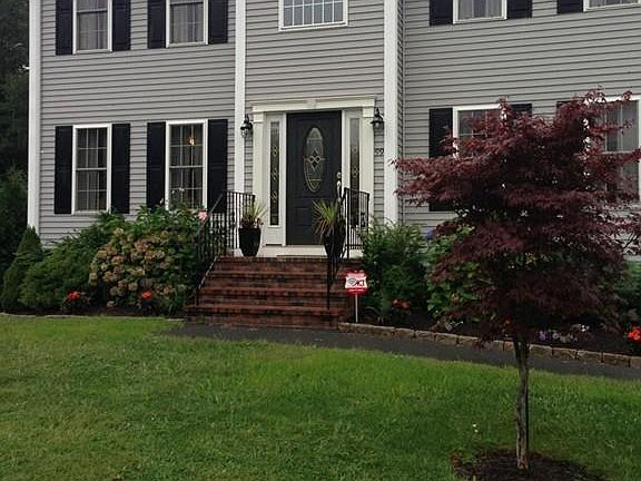 This spacious like new custom built in 2007 Colonial features: 3 Bedrooms, the master features a fireplace and master bath with heated floor and walk-in closet. Hardwood floors throughout and 2 and half baths, fireplaced living room and formal dining room, sound system, kitchen with granite counters and stainless steel appliances, just 3 years old. The new trex decking over looks back yard and custom built shed with heat and electric.. Two car garage and the lawn has sprinkler system. The basement is finished with plenty of closets, gas stove and a back up generator. Maintenance free exterior and comes with solar panels. This property is move in ready and very well kept.
