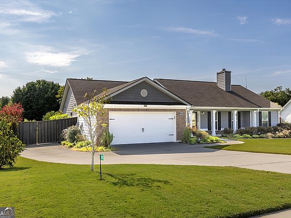 Turn-key RANCH HOME in a well-kept neighborhood! This charming home with a rocking chair front porch offers a welcoming layout with Audacity laminate flooring throughout, FRESH INTERIOR PAINT, and UPGRADED LIGHT FIXTURES, CEILING FANS in every room, and a HUGE MASTER CLOSET. The living room features BUILT-IN CABINETS by the FIREPLACE, and the garage has added insulation plus an insulated door for ENERGY EFFICIENCY and SOUND REDUCTION. The laundry room includes added cabinets for EXTRA STORAGE. Step outside to enjoy the EXTENDED PATIO with roll-down screen on the covered area-perfect for relaxing or entertaining. Further back in the yard, you'll find a PERGOLA offering another great spot to gather or unwind. The backyard is fully FENCED and beautifully landscaped with a pecan tree, peach tree, grapevines, blackberry and blueberry bushes, dogwoods, azaleas, hibiscus, daylilies, crape myrtles, and black-eyed Susans. A GREENHOUSE, IRRIGATION SYSTEM, and a 12'x22' SHOP WITH LOFT complete the outdoor space. Additional updates include TINTED STORM DOORS, smoke and carbon monoxide detectors, and attic insulation over the garage. This peaceful neighborhood is just one street, offering a quiet and friendly atmosphere. Ask about NO DOWNPAYMENT options.