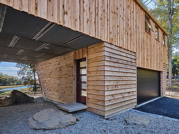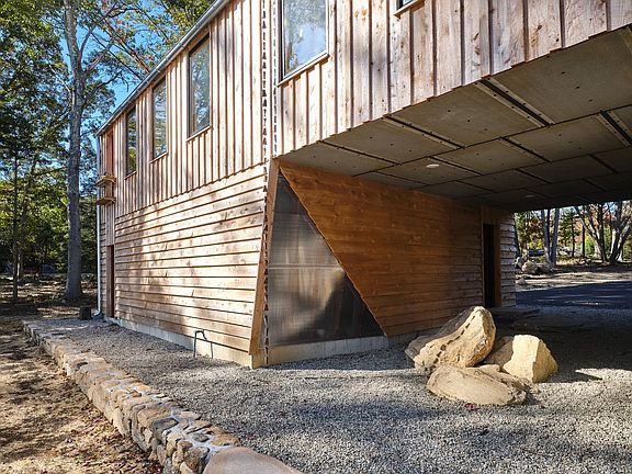 "Riverbend" is a nearly completed contemporary work of liveable sculpture. Drink in mesmerizing views of the Patchogue River from almost every room. Designed and executed by noted architect Robert Furno, a one-time collaborator of sculptor and artist Donald Judd, this home offers two distinct "stacked" spaces. The ground level space is comprised of a kitchen/great room, master suite, bedroom, laundry, roof terrace, two full baths and attached two car garage. The second level "carriage house" with additional two car garage below, is a distinctive progression of the main level with private entrance and grand staircase. The two "boxes" co-exist with minimal physical connection, offering the perfect family compound or ideal guest quarters. The carriage house is currently partially finished and may be completed to meet your needs. This is a true living work of art that is pure magic! Both at one with and a counterpoint to its private surroundings, Riverbend offers the ultimate in coastal contemporary chic. Rough sawn locally sourced Hemlock siding. Metal roofing with custom rain chains. Sheets of polycarbonate allow light to flood the Scandinavian influenced interior. Birch paneled walls are a bold touch reminiscent of Bauhaus design. European insulation methods, a propane heating system and green building technologies combine to assure a low carbon footprint. The Japanese inspired grounds offer tranquility and a parade of wildlife. Just over two hours to NYC or Boston. Dream big!