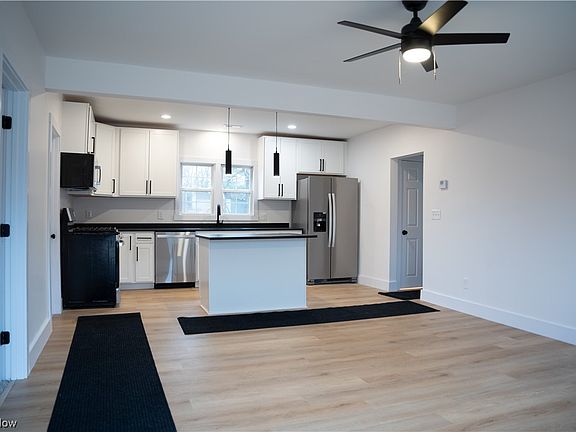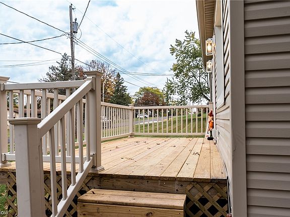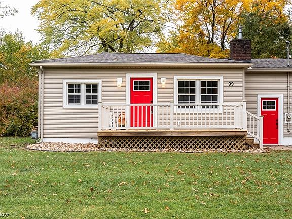 Welcome to this completely remodeled ranch sitting on a corner lot with two parcels (.22 acres) in the highly desirable Mogadore school district! This property has great curb appeal with a welcoming front deck, dual paved driveways, and professional landscaping. The modern open floor plan maximizes the sqft and is perfect for entertaining. The brand new kitchen boasts 42" soft close white shake cabinets, island with overhang for seating, matte black single basin sink, black granite countertops, modern cabinet hardware, upgraded faucet, brand new stainless steel appliances, and sleek pendant lighting. Bathroom features a new tub/shower combo with modern black fixtures, new vanity, vanity light, mirror and more! Primary bedroom with high ceilings, bay window, exterior access, and double door closet. Separate laundry on main floor. No expenses were spared as this property has fresh paint throughout, ceiling fans in every room, LED canned lighting, brand new LVP in the main area, new carpet in the bedrooms, new modern 5" baseboards, trim, interior 6 panel doors, updated electrical and plumbing! PLUS A BRAND NEW roof, furnace, and hot water heater!! Property also includes a storage shed. Seller is offering closing costs and/or rate buy downs! Call for more details!