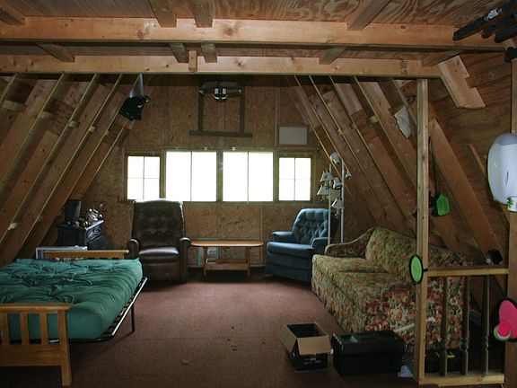 This waterfront camp has a big dock at the water's edge where you can sit and have nice views of the the whole lake. You can also tie up your boat, kayak, or canoe and go swimming from the roomy dock. The A frame camp, which offers a large screened porch, has a big open kitchen and living room. There are also a 3/4 bath and a sleeping loft. The spacious lot is accessed by a common driveway, however there is frontage on a paved town road if you want to develop a private access. . With appropriate permitting, you could even build your permanent home on this site and enjoy lakefront living year round. Come check out this property with lots of potential.