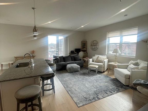 LUXURY RENTAL! Boutique, Custom Built Brick Elevator Building with the highest quality modern construction (from 2021, SS beams, 6" walls, blown-in closed cell insulation) with an elevator only with 10 units. This apartment is the largest of 2 beds/2bedrooms, located on the 3rd floor with Southern exposure. You are greeted by a long hallway with nine-foot ceilings, massive open concept kitchen with granite/SS appliances and 6-foot island, open dining and living area, sliders to Juliet balcony. Main bedroom en-suite with two large closets. Second generous bedroom with full bath across the hallway, laundry room with stackable washer & dryer complete this 1370 sqft unit. Included in rent are two (2) cars tandem assigned parking spaces under the building . No pets allowed. Common areas include mailroom, entry lobby and bike storage area. This building is centrally located, across the street from the Park and City Hall, close to everything that Waltham has to offer; train to Boston at the door steps, direct access to vibrant Moody St with Restaurant Row & Cafes, Embassy Cinema, shops, etc. Enjoy a stroll along the Charles River. Luxury & convenience waiting for you! Video tour available upon request. Luxury rental apartment in a Luxury Boutique Building. Tenant pays for all utilities: water & sewer, natural gas, electricity, cable/Internet if desired. Modern (2021) energy efficient unit and the building with 6" walls, closed cell insulation, high end windows and doors. Landlord takes care of trash removal, grounds maintenance, snow removal from the driveway. Security system in place. Each unit has intercom to allow visitor to enter the building. Up front costs: 1st month's rent. last month's rent, one month's rent as security deposit.