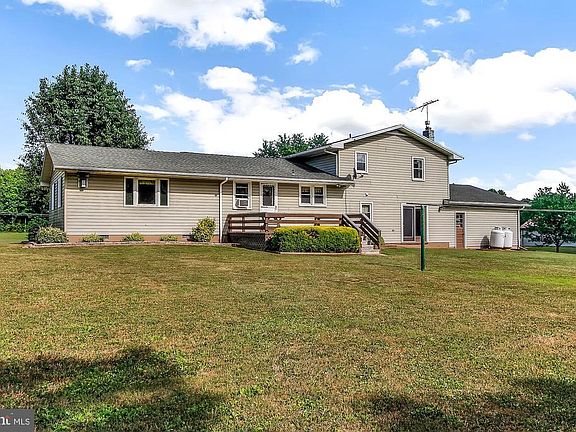 This property is a winner in so many ways starting with the magnificent setting. This sweet multi-level sits in the center of 4.3 rolling acres on a side road between Littlestown and Gettysburg. The long driveway welcomes you to this delightful rural property. Plenty of outside parking space for all your vehicles plus the attached 2-car garage. Some interior remodeling was done with the updated oak Kitchen in 2014, counter tops and upstairs Bath. Roof replaced in 2010. There is Hardwood Flooring under the carpet in the Dining Room, stairs and the second floor. Also exterior walls were removed to add the fabulous Family Room off the Kitchen. The Kitchen offers a built-in table plus a Dining Area. All the appliances will stay, adding more value to this home. The Family Room is surrounded on all walls with triple-sized windows bringing lots of natural light into the room. Most of the windows throughout the house have been replaced, another money saver. The corner propane stove in the Family Room easily warms this room on chilly days. This happy room has hosted many large family gatherings over the years. Go down several steps to the middle level, featuring another Family Room with a wood burning Fireplace which now has a propane log. Also, the Den/Office and a Full Bath are on this level. The basement is partially finished: a Recreation/Exercise Room and the Laundry/Storage Room. These rooms are not heated but stay comfortable since they are underground. Entertain family and friends on the expansive front patio and the backyard deck with your view of the verdant woods along the rear yard. 2 big outbuildings complete this valuable property: 16 x 20 vinyl-sided workshop and a 12 x 20 storage shed. They had horses here many years ago. Zoning allows 1 horse/2 acres. Lots of marshmallows have been toasted over a fire down by the woods. Let's make s'mores at your new home soon!