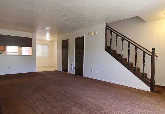 Two story Town home, on a quiet tree lined street. This town home offers two bedrooms upstairs and a full bath, there is also a half bath located on the main floor. Washer Dryer hookups and room off kitchen for dining area. Large living area with picture front window. Double car garage with opener that opens to a private patio and into the back door of the unit. Pictures and videos maybe of a similar unit.