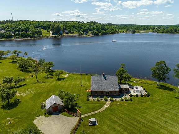 A RARE FIND! This 18th century home remained in the same family for 200 years, and has had just 2 owners since. This remarkable home has borne witness to countless historic events and the early settlement and growth of the picturesque town of Machiasport. The breathtaking 180 degree water views include a birds-eye view of the historic village and, facing west over the water, the sunsets are legendary! This highly unique cape-style home exudes warmth and charm with its colorful, hand-painted interior decoration. The property is comprised of 3 adjacent waterfront lots totaling 24 acres, as well as a separate road-front 2.5 acre lot with a productive blueberry field (approximately 1 acre of blueberries). The land is truly stunning with acres of open pasture dotted with ancient apple trees rolling to the shoreline along the broad tidal estuary of the Machias River, and nature abounds as eagles, seals, and shorebirds fish the salty waters. There are easy to use steps down to the waterfront for canoeing/kayaking, and a perfect spot to moor a sailboat. A bonus is the long, peaceful walking trail through a magnificent sugar maple grove and spruce forest. Recent improvements include a new well, septic system, plumbing, electrical, and heating system, and all new architecturally appropriate Marvin windows. This house is located at the end of a town-maintained road that serves only 2 other homes. The extensive road and water frontage will ensure your future privacy, and this large property affords many possible building sites for future expansion. Truly, a treasure awaiting your enjoyment!