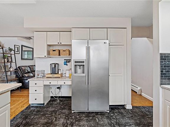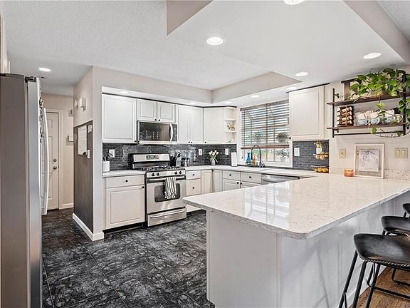 Fall in love with this super special contemporary that blends style, comfort, and convenience in one amazing package! Tucked in a quiet neighborhood yet just minutes to Post Rd & the highways, this home brings you the best of both worlds. Step inside and you’ll find a sunken cathedral living room with its cozy fireplace bright which opens to the kitchen/dining area featuring sleek stainless appliances (brand-new stainless microwave & dishwasher and new disposal), gorgeous new quartz countertops. Glass doors to the outside featuring newer paver patio with built-in firepit for summer night entertaining under the stars, and a completely fenced yard perfect for kids or fur babies alike! Upstairs, the primary suite is a true retreat with soaring ceilings, a walk-in closet, and private “Hollywood” access to the updated main bath. Two additional bedrooms give you room for guests, a home office, or whatever fits your lifestyle. A clean, finished lower level adds bonus playroom/rec space plus laundry. Add in the new garage door system, a 4-year-young roof, a 1-year-old AC unit, and a 2-car garage—and you’ve got worry-free living wrapped in a bright, contemporary vibe. Subject to sellers getting their next house- which we have found! See you soon!