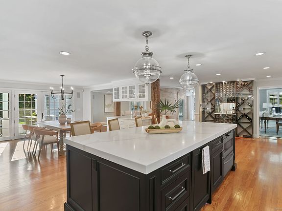 Welcome to 99 Old Academy Road, a distinguished Cape originally reimagined by local architect Richard Swann and thoughtfully expanded in 2019 by Alex Esposito. Arched-top dormers elevate the architecture, blending tradition with luxury. This residence offers 6 bedrooms plus a private two-level guest suite, 7 full / 3 half baths, all set on 2+ acres in lower Greenfield Hill. At the heart of the home, the kitchen offers an open layout with a spacious dining area, custom cabinetry, a floor-to-ceiling glass wine display, and walk-in pantry. The kitchen flows seamlessly onto a bluestone patio with a double-sided fireplace, perfect for indoor-outdoor living. The kitchen leads to the lower level, featuring a stone bar in the game room, a 10-seat cinema, and ample storage. The family room, with its built-ins, poolside views, and gas fireplace, offers an inviting year-round retreat, the main level also includes a private office. Upstairs, every bedroom is paired with its own private bath, each with a unique design. The custom mahogany library serves as a passage to the East Wing, where the main level offers a gym, poolside lounge, & outdoor shower, while the upper-level features three additional en-suite bedrooms and a second laundry room. Outdoors, enjoy wrap-a-round mahogany decks, multiple bluestone patios, a heated pool, volleyball court, pergola gardens, and fruit trees. 99 Old Academy Road isn't just a home, it's a lifestyle of elegance, comfort, and unforgettable spaces.