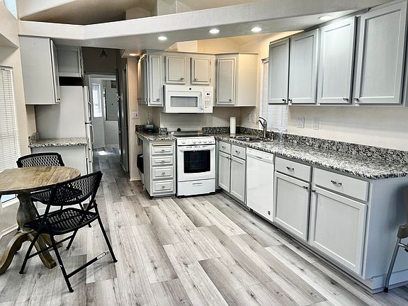 Property has an recorded affidavit of fixture. This is NOT a 55+, Charming updated home in Harrisburg. Great location with proximity to shopping and services. From the front door and covered deck a great view onto pine valley mnt. Community Center has great pool, putting green and ATV club for avid 4 wheelers. Beautiful walking paths and close to Quail Lake for fishing and boating. charming matching shed. Agents please verify schools. Mini Split used for A/C. Second Bedroom would need Armoire, There is no closet.