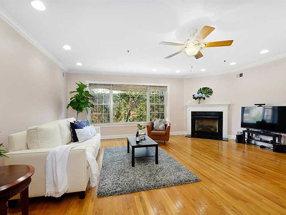 LANDLORD PAYS FEE! Enjoy the convenience of living on the corner of 1st Street inside 99 Park, the perfect downtown location with proximity to all transportation, shops and restaurants. Welcome to this boutique, elevator building with on-site, deeded parking. Open the door to this spacious 1371 square foot home and enter into an entertainer's dream with open living space, a dining room and kitchen. The generous living area features large picture windows looking onto a beautiful tree-lined street, a decorative fireplace, hardwood floors and crown molding. The kitchen has stainless steel appliances and plenty of cabinets for storage. Retreat to the large primary bedroom with a big walk-through closet and ensuite bath with a jetted tub. The second room can be used as a bedroom, den or office which has a separate closet and French doors opening to the living area. The second bath has classic black and white tile and a standing shower. Completing this home is central heating and AC and a separate washer/dryer room with storage space. Make an appointment today to view this elegant home at this rarely available location.