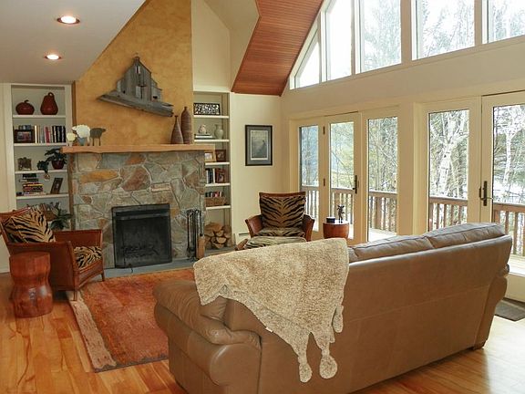 Carefully nestled into the landscape at the much sought after "end of the road" location, this well maintained, upgraded home has views of the lake, mountains and golf course. The house is architect designed and thoughtfully laid out to take full advantage of those views from every room. The kitchen is well planned, with stainless steel appliances, granite counters and complete with greenhouse area for casual dining. This kitchen is open so the cook can still be part of the conversation while preparing the meal. The living room enjoys a field-stone fireplace and the main level has hardwood floors, vaulted ceiling, and a whole side of glass doors to enjoy lake and mountain views. There is a large deck with retractable awning and south western exposure. The master suite is located on the main level with doors onto the deck and complete with en suite bath with jet tub, separate shower and double sinks. There are three more bedrooms upstairs and plenty of private space for everyone. Downstairs office and bath could also make a lovely 5th bedroom. Plenty of room on this level for a rec-room and workshop add to the many useful areas of the spacious home. New roof and well pump in 2015. All this, just a short walk to the club or the village. Meticulously cared for. This one is ready to walk into and start enjoying your Quechee life. Come take a look.