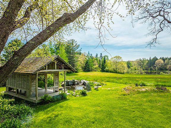 This classic Maine home, which has been in the same family for 50 years, is a true reminder of what summer in Maine is all about in an extraordinary setting with fields, a large pond, and extensive gardens. A beautifully designed screen house overlooks a water feature made of quarried granite and stunning gardens. A sweet sleeping cottage sits at the pond's edge. There's an oversized 2-car garage with plenty of room for a workshop and a separate barn. Inside, the house offers first-floor living featuring a nicely updated kitchen (with woodstove), a dining area with large windows overlooking the property, a living room with another woodstove, a first-floor primary bedroom, an office, and a full bath. Upstairs is a large bedroom with a private bath and a vaulted ceiling, and an additional bedroom. You could restore the old pathways surrounding the property for on-site hiking, cross-country skiing, or snowshoeing. It's close to Thomaston and Rockland, but it feels miles away. This is a gem of a property.