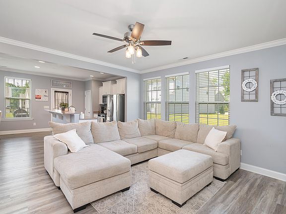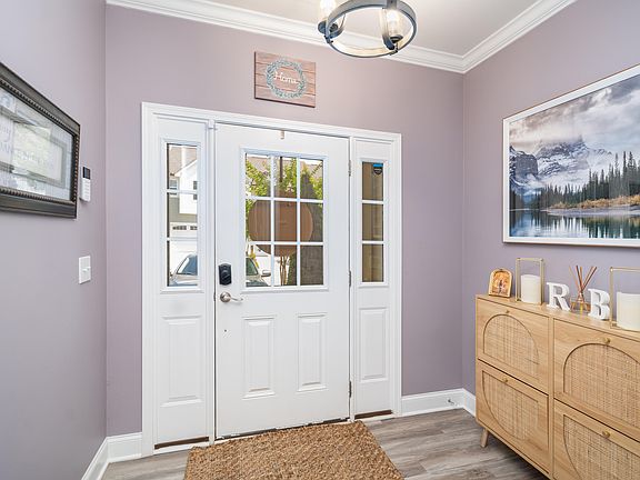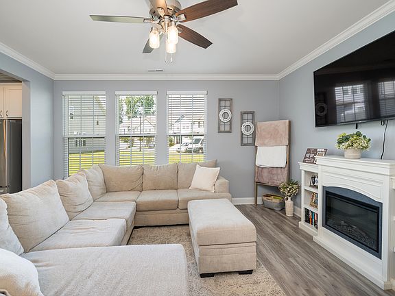 Discover the charm of this like-new 3-bedroom, 2.5-bath end-unit townhome. The open floor plan is filled with natural light, highlighting the upgraded luxury vinyl plank flooring throughout. The main level and primary suite are adorned with elegant crown molding. The oversized owner's suite features a cozy sitting area, a spacious walk-in closet, and a luxurious bathroom with marble countertops, a walk-in shower, and a private water closet. The modern kitchen is equipped with quartz countertops, a large island with a breakfast bar, a farmhouse sink, a gas stove, and a pantry. The dining room flows seamlessly into the inviting living room. Upstairs, the hall bath includes an upgraded vanity matching the kitchen's aesthetic. Additional storage is available with a 1-car garage and an exterior storage area. Enjoy your mornings on the covered front stoop or unwind on the backyard patio. Plus, the backyard offers tons of flex space, perfect for various outdoor activities or personal projects. Conveniently located close to everything Clayton has to offer, this beautiful townhome is ready for you to call it home.