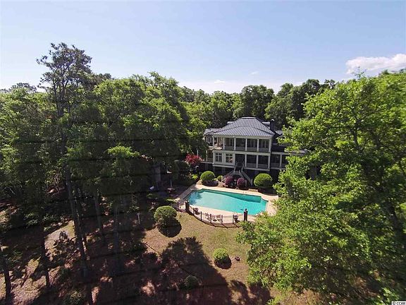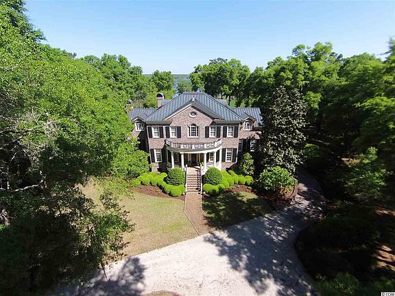 Riverbend is a spectacular Georgian Colonial residence situated on a dramatic bluff overlooking historic Ricefields and the Waccamaw River. The home is located on the river side of the private enclave of Prince George, a 2000 acre ocean to river community with only 150 properties. Designed by the highly regarded firm of SGA architects in conjunction with the owners, the 4 bedroom 4 ½ bath home encompasses over 5000 heated sq feet. The elegant but functional layout is perfect for family gatherings or formal dinners. On the main level, the soaring entrance foyer gives way to the open kitchen/living area. Finished with custom cherry cabinets, prep Island and second Serving Island, this area provides ample space for entertaining. Adjacent is the dining room and family kitchen. The billiard room, surrounded in beautiful custom Cherry woodwork, provides a wonderful space to gather for an after dinner cognac. From the living room, French doors open onto the large wrap around screened porch with a delightful seating area. That in turn leads to the swimming pool on the lower patio with an impressive outdoor kitchen and entertaining area. Also on the main level, one will find a private living/reading room, a half bath, and a bedroom and full bath. On the upper level, the owners have created a superb master bedroom suite, exercise room, two more bedrooms and baths, all of which open onto the upper private piazza affording stunning views across the Ricefields to the river. Included with the property is a deeded slip in the private marina exclusive to owners on the River. Complete with water and power, the owner’s slip can accommodate a vessel of up to 60 feet. To enhance one’s enjoyment, the owners have spared no expense in equipping the home with state of the art audio and video systems. The ample garage is adjacent to three separate secure work shops and storage spaces depending on one’s needs. Riverbend is a one of a kind residence designed for those discerning persons who demand the very best.