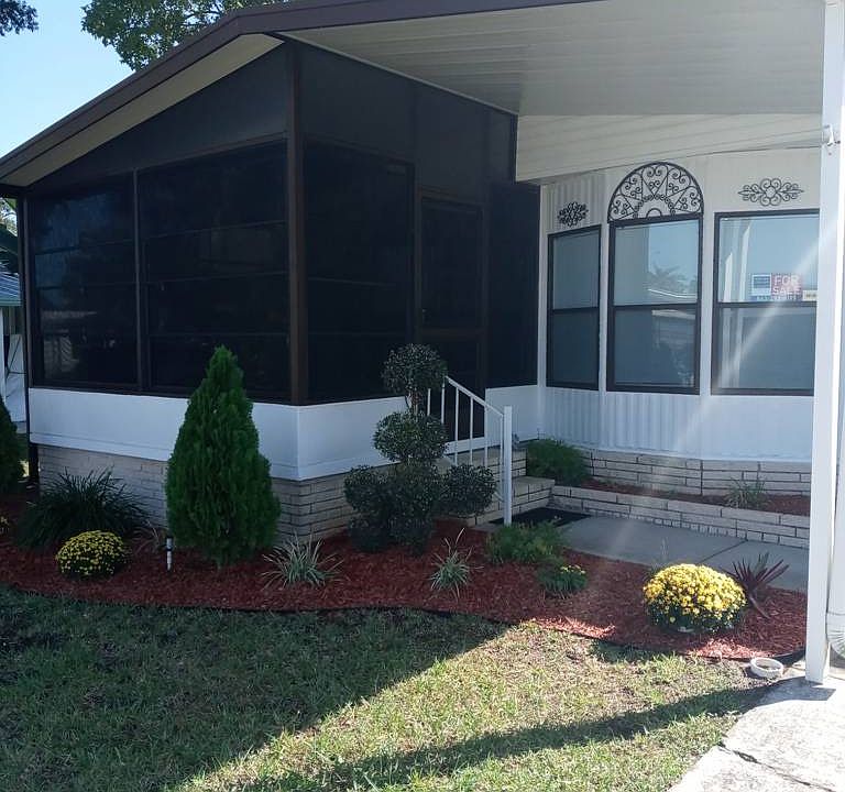 Beautiful home in gated Swiss Village. This home has many new updates including a new 25 year energy efficient shingle roof with 2 roof turbines and a tube skylight. The home features new tie downs, thermostat, vapor barrier and critter control around the home has been added.The Florida room is on the front of the home and has vinyl windows. The living room/dining room is quite large and has a large china cupboard in the dining area. The master bedroom has an ensuite bathroom which features a stand up shower. The hall bathroom has a tub/shower. The bedrooms are ample size and have large closets. The kitchen has newer appliances and a new backsplash with laminate flooring. This home comes completely turnkey and beautiful furnishings. Just bring your toothbrush. This home will not last long.