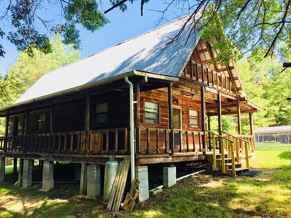 Serenity now! Make this your home or your vacation home! Either way you will absolutely love it. It is only about 9-10 miles from the main lake ( Caverun) lots of trees and woods surround this beautiful cabin on 3 sides. Approx 751 square feet, 1 full bath and unofficially 2 bedrooms upstairs. The cabin has city water, septic , propane space heater, AC window units to keep you cool in the summer. comes with a refrigerator and cook top stove. Awesome screened in back porch to watch all the critters. Part of a small pond is on the property on the very back. This would also be a great investment opportunity as it is actually 3 lots so you could build 2 more cabins and have a cabin rental business if you wanted. Too many possibilities I will let you decide what you want to do with it. Bring cash and you could be barbecuing and playing cornhole in a couple of weeks. Dont wait you will be too late!!!!!!!
