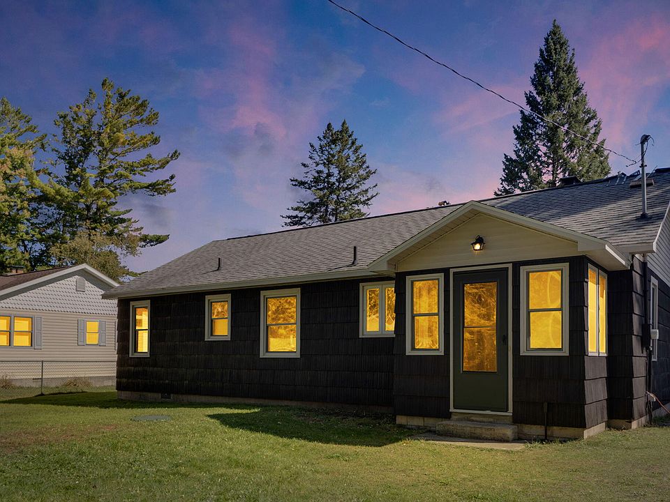 Located on the south west shore of Black Lake with 127' frontage on nice level site. The hard pack bottom is great for swimming and the seawall on the shoreline. The cottage has some great updates including in the kitchen with all new appliances, new carpeting, updated bathroom, and new installed 24k mini split. The 2 bedrooms 1 bath with back porch and large front porch is a great place to relax and listen to the waves or go to UAW facilities and golf course nearby. The detached 2 car garage is mostly insulated and includes a heat source for a hobby room. A fantastic property with a lot to offer with large lot and an updated cottage ready for a new owner.