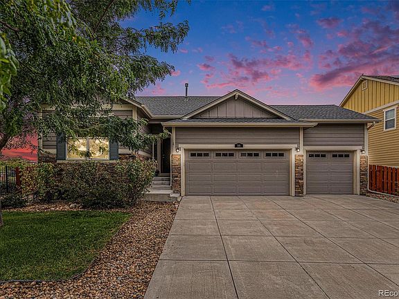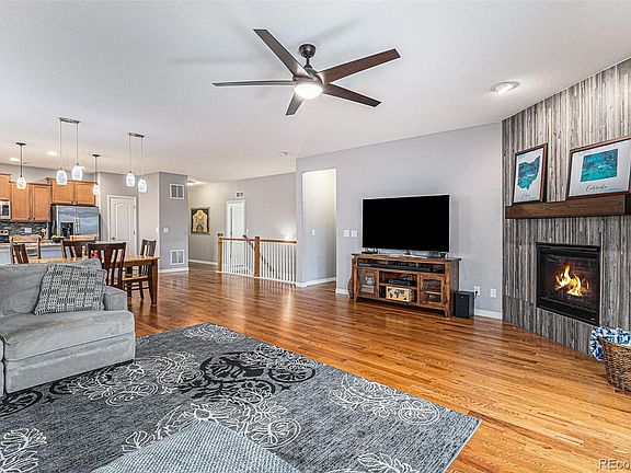 Welcome to 99 S Millbrook Street, a beautifully maintained home on a serene corner lot. As you enter, you’ll immediately appreciate the real hardwood floors that flow seamlessly throughout the main level, the bedrooms lush upgraded StainMaster Elite foam padding & Pet Protect carpets. Levolor cellular shades throughout the home offer both style and practicality, with many including top-down/bottom-up functionality. The primary bedroom also boasts upgraded room-darkening shades, and west-facing windows are fitted with UV-filtering film to enhance comfort.The kitchen has ample seating around the island, Timberlake maple cabinets, stainless steel appliances, a large pantry, and a beautiful glass backsplash. Relax by the gas fireplace in the winter & enjoy the ceiling fans throughout the home. On clear days, take in the breathtaking sunset views over the mountains. The full unfinished basement is ready for your creative touch, featuring a sump pump and rough-ins for a future bathroom. The west-facing backyard is a true highlight, featuring a newly poured patio perfect for a pergola or other enhancements, and a beautifully re-stained fence. The corner lot provides added privacy with no neighbors to the west or south. Recent updates include a new roof with a transferable warranty, a recently serviced water heater, a new garage opener, and a recently repoured garage floor. Adonea is a vibrant community with easy access to Buckley SFB, E-470, I-70, and DIA, plus a short drive to the mountains or downtown Denver. Nearby amenities include a pocket park, community pool/splash pad, playground, volleyball and basketball courts, and a large green belt with trails. Murphy Creek Golf Course and Southlands are also close by. This home is move-in ready and brimming with natural light. Contact us for a private showing and discover the charm and elegance of this exceptional property.