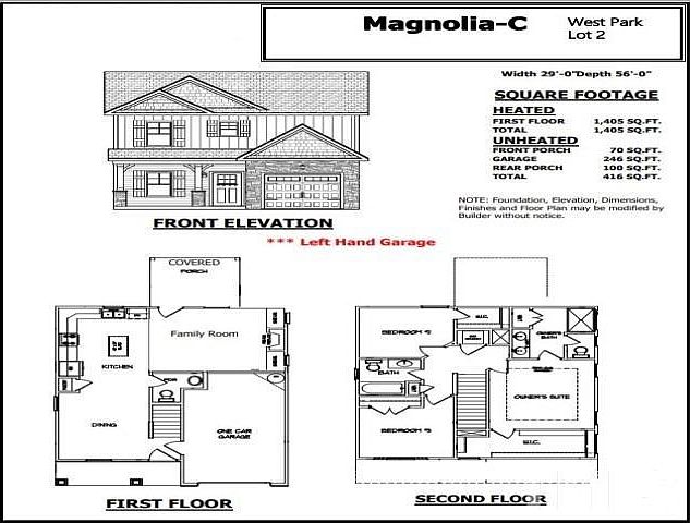 The Magnolia C features 1405 sq. ft. features 3 bedrooms, 2.5 baths, and a single car garage. Open concept family room, kitchen, and dining room. Fireplace with built-in cabinets. Covered front and back porches. The master suite has a large walk-in closet and double vanity sinks. Located in Harnett County close to Sanford and Fort Bragg. Just a short commute to Lillington and Fayetteville.