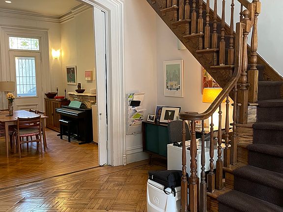 *please note: this rental may not be eligible for renewal after the initial term. Owner tentatively planning a renovation of the unit at the end of the lease. Whatever lease term is agreed upon, owner may plan to commence renovation thereafter and wants to be upfront that he may not renew the lease (this is TBD). So this should be a relatively short-term plan for the tenant as well. Available Sept 1 but flexible on start date between now and Oct 1. Open to discussing lease terms, including from 6-18 months. 3 bedroom, 2.5 bath duplex apartment, on St Marks Ave between Flatbush and Carlton. The 3rd bedroom is a small room well suited for a baby or small child room or a home office. Original details throughout. Brand new large-size laundry in unit (located on 2nd floor with bedrooms). The two floors are the parlor level + the floor above. The main entrance is on the parlor level up the front stoop, but there is also a second entry from the garden level (under the stoop) with an additional area for coats/storage and private entrance leading up to the apartment. The backyard is part of this duplex apartment, measures approx 70x21 feet with artificial grass + tree house/platform, and 2 swings under the deck. Great space for adults and especially kids. There is a deck off the kitchen with stairs leading down to the yard. Photo shows a sun shade that can be removed easily (we've typically used in summer and removed for non-summer months). Family oriented building that feels like a home.