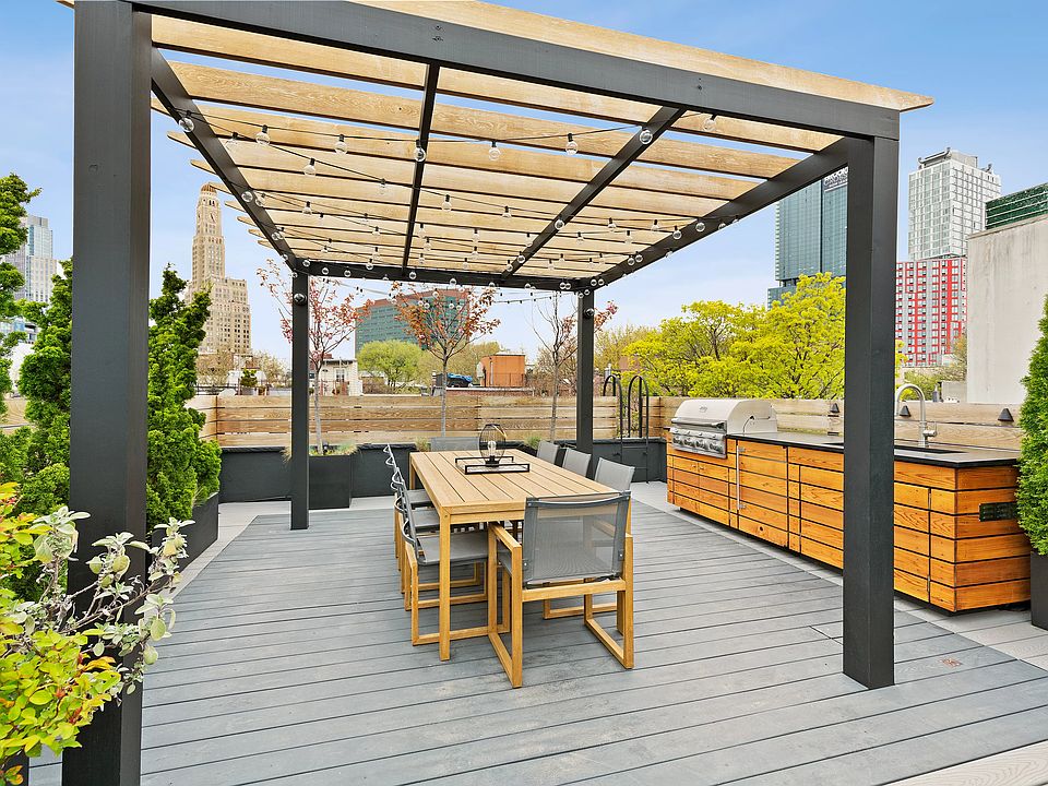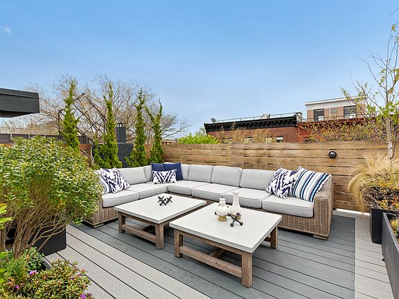 Seeking outdoor space? Look no further! You will be blown away by this unparalleled, award-winning, landscaped roof deck! This beautifully renovated 2 bed, 2 bath condo has one of the most beautiful roof gardens in Brooklyn. The stunning, private, outdoor space is accessed directly from the apartment and covers the entire roof of this brownstone building. The roof deck has open Brooklyn and Manhattan views and features a custom-built outdoor kitchen, complete with a plumbed infrared grill, sink and refrigerator for incredible al fresco meals. A gorgeous cedar pergola, perfectly setup for dining, and a separate seating area for lounging creates multiple entertaining spaces. Built-in lighting is perfectly placed throughout for undisturbed enjoyment from day into night. The roof garden, featured in several publications, boasts mature perennials that have been thoughtfully selected to bloom throughout the spring and summer. A built-in irrigation system makes this one-of-a-kind urban oasis easy to enjoy. Not to be outdone, the stylish, renovated interior of this lovely home is in excellent condition and is move-in ready. This spacious apartment has a gorgeous open kitchen with a massive butcher-block island overlooking a grand living/dining room complete with beamed ceiling, exposed brick and elegant gas fireplace. The large primary bedroom has a renovated ensuite bathroom, two large closets, and a small outdoor area. The secondary bedroom is well proportioned with ample storage. The second bathroom is fully renovated with a jacuzzi tub. Along the hall is a great bonus space, currently used as a large walk-in closet, but would be an ideal home office as well. The apartment has high ceilings, beautiful crown and baseboard molding, hardwood floors, mini-split HVAC units, vented washer/dryer, and tons of closet space. Thoughtful touches abound, such as custom-built radiator covers and bookshelves and a built-in sound system. This self-managed condominium is located at the intersection of Park Slope and Boerum Hill. There is shared storage, bike and stroller parking in the basement. This 3-unit building is just blocks away from the best shops and restaurants of Smith Street and Fifth Ave, while also being close to Brooklyn's entertainment/transportation nexus, including BAM and the Barclays Center/Atlantic Terminal. The 2/3/4/5/A/C/B/D/N/Q/R and G trains and LIRR, Whole Foods, Apple Store, and City Point (with Trader Joe's, Target, Alamo DraftHouse Cinema and Dekalb Market food hall) are only minutes away. While you may not need more green space here, the glorious Prospect Park is just a few blocks away. Pets, pied-a-terres, and co-purchases allowed. This home is a MUST SEE!