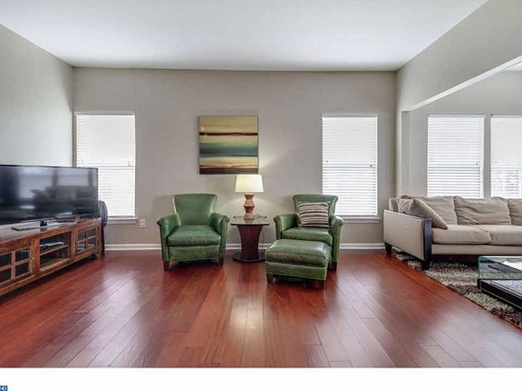 Stunningly beautiful expanded "Roxbury" end unit in an ideal location backing up to a wooded area in the newer section of Country Estates! Upon entering you'll find gorgeous Brazilian cherry hardwood flooring throughout the main level of this expansive and updated townhome. The open concept layout has a large foyer leading to the expansive main floor living area that includes kitchen, living room, dining room and family room. The kitchen is artfully situated in the heart of the home and offers 42" upgraded cherry cabinets, slate-colored counters, gas cooking and a convenient storage island. You'll just love the many windows (8) and french door that leads to the EP Henry patio overlooking a wooded area. An updated powder room and garage access complete the first floor. The expansive lower level is fully finished and features a great room, full bath, soundproof office and plenty of storage space. This area could also serve as an in-law suite if needed. On the second floor the light and bright master suite offers a large walk-in closet and bathroom with his-and-her sinks, stall shower and soaking tub. The two additional bedrooms offer lots of light and oversized closets. The hall bath has also been tastefully updated. The laundry room is located on the second-floor for added convenience. This expanded end unit features an 8-foot bump-out that allows for many more windows and larger bedrooms. This home is Energy Star Certified and has all of the updates you could ask for: neutral, contemporary paint; 9-foot ceilings; attractive window treatments; six-panel doors; automatic garage door opener and more! Country Estates is a walkable development with tennis courts, basketball courts and playground. The low monthly association fee covers your lawn maintenance and snow removal. Close to major routes of transportation, Central Philadelphia and Joint Base MDL. FHA and VA financing are welcome! Property tax appeal is pending (please call agent for details).