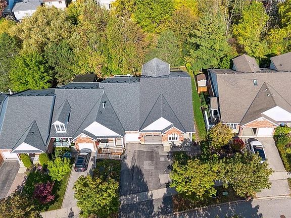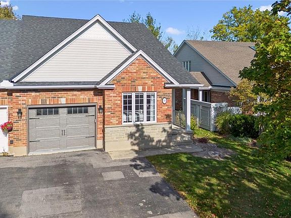 Looking for a home that gives you main-floor living without sacrificing space for family or guests? Welcome to 99 Schroder Crescent - a spacious, move-in-ready bungaloft backing onto Hadati Creek in Guelphs east end. This corner unit feels more like a detached home, with over 2,000 sq ft above grade plus a finished walkout basement. The brick and stone exterior, covered front porch, and double driveway offer great curb appeal from the start. Inside, the layout is ideal for downsizers who still want room to host or for families with older children who like their own space. The main floor features maple hardwood throughout and an open-concept living and dining area with a cozy fireplace and soaring two-storey ceilings that open to the loft above. The bright eat-in kitchen has stone countertops, stainless steel appliances, and a breakfast area that walks out to a deck overlooking the creek - the perfect spot for morning coffee with a view. The oversized main-floor primary suite has generous closet space and a private 4-piece ensuite with a soaker tub. You'll also find a den or second bedroom on this level, plus a powder room and main floor laundry for easy everyday living. Upstairs, the loft is the perfect flex space - a TV room, reading nook, or office - alongside a third bedroom and full bathroom. The finished walkout basement gives you even more versatility with a large recreation room, fourth bedroom, flex space, a bathroom with sauna, tons of storage, and access to a private patio surrounded by nature. Whether you're downsizing and want comfort without compromise, or youre a family looking for separation of space, this home delivers. Steps to parks, schools, trails, and amenities, 99 Schroder Crescent combines low-maintenance living with the size and feel of a detached home - backing onto one of the prettiest natural settings in the city!