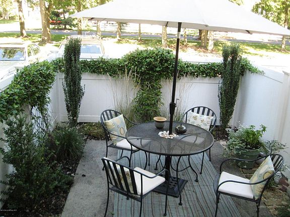 Charming patio welcomes you to this desirable Society Hill first level Garden Condo.Neutral colors and carpeting make decorating a breeze in this 2 bedroom,2 bath home w/eat in kitchen boasting wood cabinetry and wood floor, year old dishwasher, 2 year old stove plus large refrigerator. Kitchen sliders open to a second patio for added convenience. Master bedroom w bath and walk in closet. Good sized 2nd bedroom w/nice closet. Additional updates include 5 year old furnace, a/c,washer/dryer. Hot water heater with new gas line 8 years old. Enjoy the lifestyle with clubhouse, pool, playground and tennis courts for leisure living. Convenient to schools, shopping, Routes 18 and 35, GSP and Little Silver Train Station. Minutes to the happening town of Red Bank and Jersey Shore. Backs to woods!