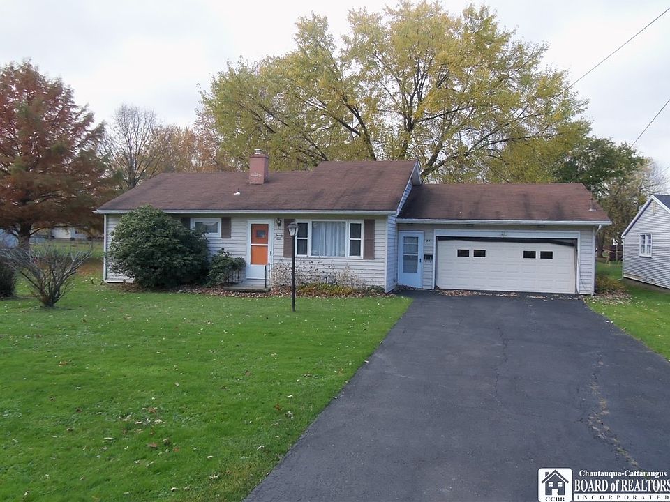 Home is vinyl sided with a large attached 2 car garage having pull down stairs for attic storage ( no basement). Large first floor laundry room with 2 closets, eat in kitchen, and one full bath. Newer vinyl windows, circuit breakers, FHA heat, blacktop drive. Very reasonable taxes.