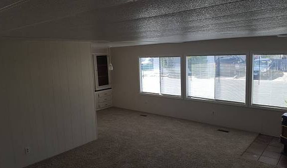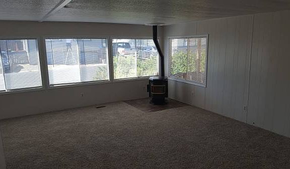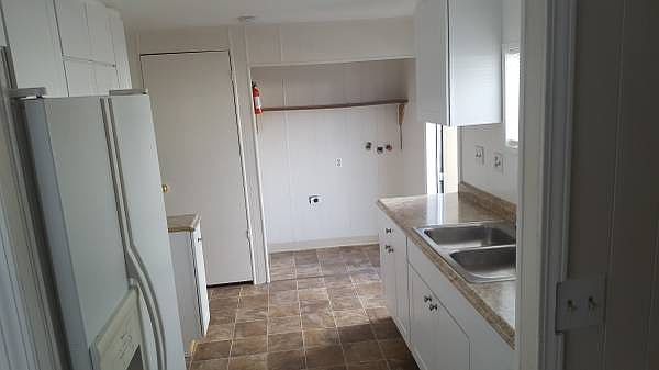 Remodeled 2 bedroom 2 bath, double wide mobile home. There is new flooring throughout this home. This home has new interior lighting, paint , trim and casings. There are new sinks, toilets, vanities and fixtures in both bathrooms. this home has a pellet stove. Open living room / dinning room. Kitchen has new cabinets and counter tops. There is a fenced yard and patio cover. This home is in a family oriented community with a club house and pool. There are schools and shopping centers near. On city bus lines.