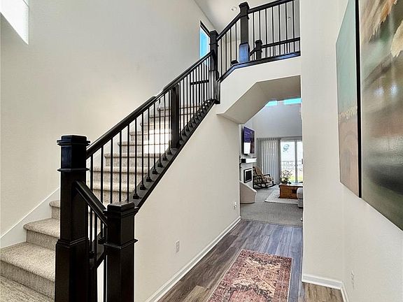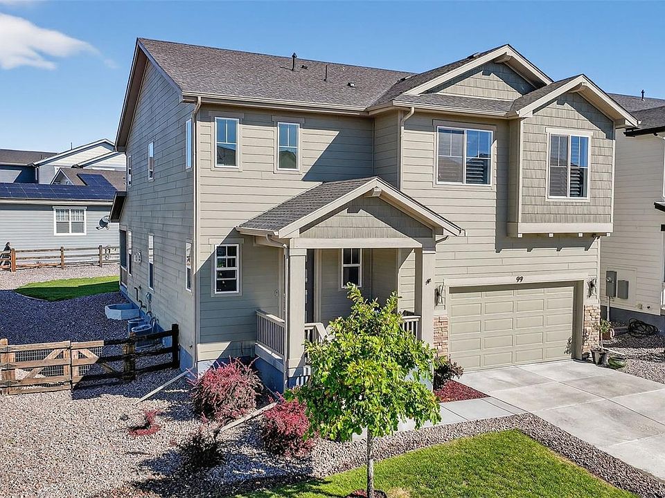 Enjoy Colorado's beautiful sunrise and sunsets from the serene patio on this highly upgraded Toll Bros. home in Montaine. This home is perfectly located on a huge corner lot. The two-story entry unfolds in dramatic height with an ornamental iron staircase that sweeps upward inviting you in. Beyond the entry is a grand living room with custom window coverings, gorgeous linear fireplace with remote and a four-panel center slider. The kitchen is a Chef's dream with sleek granite counters, stainless appliances, large island with seating for casual dining or entertaining. It flows effortlessly into the dining room, creating an ideal space for entertaining groups large or small. A walk-in pantry offers abundant storage without disrupting the elegant aesthetic of the space. A light-filled home office with wifi and TV prewire installed — perfect for meal planning or catching up on tasks. The upper level features a laundry room with built-in cabinetry and is conveniently located near all bedrooms. Samsung washer and dryer are included. Washer has its own internal presoak tub. The luxurious primary suite on the upper level is a tranquil space with recessed lighting in the tray ceiling. Spa-like bath has a dramatic walk-in shower with a frameless glass enclosure and double shower heads. Walk-in closet completes this private primary retreat. Additional bedrooms have great views and generous closet space. Daylight windows and 10' ceilings in the full basement let in natural light. Pet washing station with hot and cold water lines is a great addition in the basement. Whole house WiFi connectivity, programmable Jellyfish exterior lighting, and upgraded carpet are some of the many features of this beautiful home. Montaine is a desirable neighborhood located just north of Bell Mountain Ranch. Convenient to downtown Castle Rock and I-25. Community clubhouse with activities and numerous amenities has become the anchor for this neighborhood. *Over $110,000 in upgrades*