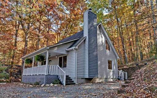 If you like light, bright and airy, then this FULLY FURNISHED mountain cabin is for you! Open great room with soaring cathedral ceiling, stone fireplace and wood floors. Fully equipped kitchen w/area for dining. 2 bedroom/2 bath home with a nice sized loft for extra sleeping or home office. Large laundry on main floor. Relax on the rocking chair front porch as you watch the abundant wildlife and enjoy the seasonal mountain view. Located in popular mountain community w/4 private lakes, nature trails, pool, tennis, clubhouse, gated security, and just minutes from the National Forest and Ellijay apple orchards. Great Condition-Move In Ready! Property being sold "as is"