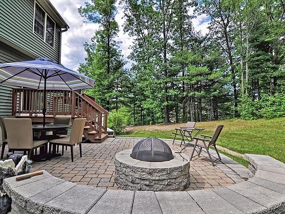 Welcome Home! This impeccably maintained, energy efficient colonial in desirable Pingry Hill neighborhood features a large family room with cathedral ceilings and a gas fireplace. Oak hardwood flooring flows into the dining room and eat-in kitchen making entertaining a breeze. The kitchen features ample cabinets, granite counter tops and energy efficient stainless-steel appliances. A slider door looks out onto a serene deck and stone patio which boasts a fire pit and sitting wall. A carpeted front room offers possibilities as an office or craft room. The second level features a spacious master suite including full bath and walk-in closet, along with two bedrooms and a second full bathroom. Finished basement with Berber-style carpeting can be used as a media or play room. Additional features include central air conditioning, first floor laundry room and half bathroom, two-car underneath garage and storage shed. Quick access to commuter rail, Rte 495 and Rte 2. Wont Last !!!!!!!