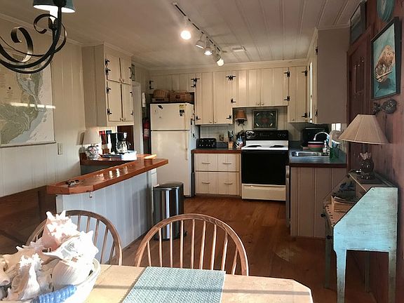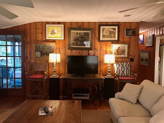 Short term or Winter rental available November 1- May 1. Fully furnished and includes all utilities. Cozy & casual, this beach cottage is the perfect place to slow down & soak up unbeatable views of the creek AND canal. Built in the 60s, space is limited in bedrooms and bathrooms - but the basics are covered and character abounds throughout this quaint vintage home. Classic bead-board and cypress paneling, rustic hardwood floors and locally inspired artwork are featured in every room. From the back, a large comfortably furnished covered deck with step-down to sundeck overlooks the canal with a private fixed dock. In the front, the kitchen, dining area and porch enjoy beautiful saltmarsh creek views. Ample parking for small boat trailer. Public boat launch nearby. Spacious ground floor has internal stairwell. This home is for the practical, not the pretentious. Experience this charming property for the lowest waterfront rate in South Litchfield! Downstairs has A/C units but no heat. This area is not included in square feet. Pets will be considered. Fenced back yard.