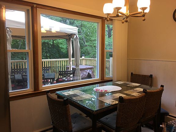 Move right into this adorable 3 br ranch featuring a one car garage, 2 fireplaces, hardwood floors, stainless steel appliances, newer roof, siding, windows, one full and two half baths (one located in master bedroom and one in finished lower level), gorgeous deck abutting woods and a stream, finished lower level with another fireplace, family room and full kitchen, laundry. Walk out of the basement to a patio, yard and shed. A breezeway off the kitchen has sliding doors going to the driveway, or access to the garage, oversized deck and the backyard. There is a radon mitigation system in place as well as a sump pump that the owner has not used. This home is located on a horseshoe drive and in the Maple Hill Elementary School District. Very close to highways, malls, parks, ponds, medical facilities, etc.