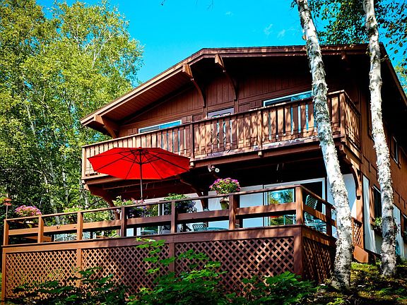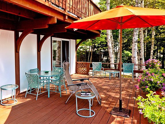 Alpenhof is conveniently located in Northeast Harbor, and offers quite a large, private residential lot for the village, containing 1.6 acres on a corner lot in a very desirable area. Designed in a Swiss chalet style, the seasonal residence is located high on the elevated lot; it has five bedrooms, with a large living area and two large, sunny decks.Beautiful birch trees and ferns surround the residence, presenting a lush, woodland setting. With judicious cutting, South and Westerly views of the Great Harbor and entrance to Somes Sound are possible, which would also enhance the setting, and still provide a quiet retreat, unseen from the road.Alpenhof is an excellent property for a buyer looking for a seasonal residence near to all the clubs and village amenities, within biking and walking distance.