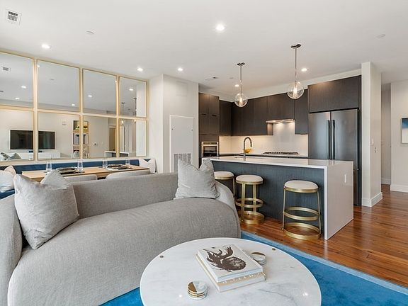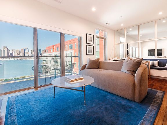 Don’t miss your chance to own this newly constructed and professionally designed corner two-bedroom plus den residence on the waterfront at The Mark at DeNormandie Wharf. Soak in mesmerizing views of the Boston Harbor and city skyline from your private south facing balcony and oversized windows. Your sun-filled spacious and open concept floor plan offers distinctive interior finishes including custom built-ins, designer light fixtures, accent walls, a black onyx refrigerator and more! Additional storage unit and TWO DEEDED garage spaces included! “The Mark” is a full-service premiere luxury building built in 2021 with 24-hour concierge, terrace lounge with fire pits/gas grills, golf simulator, conference room, entertaining lounges, pet spa, and fitness center. Work downtown? Take either the MBTA blue line from Maverick station or the water shuttle and be downtown or in the Seaport in just minutes.