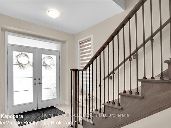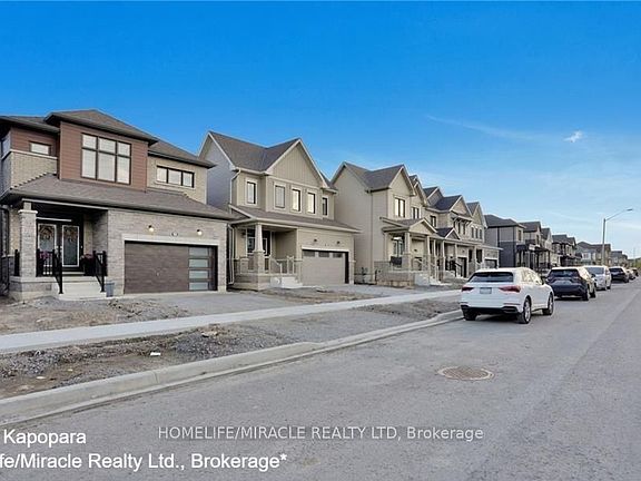 Welcome to Your Dream Home in Thorold's Most Sought-After Community! Step into this beautifully kept, brand-new detached home nestled in one of Thorold's most desirable neighborhoods. Featuring 4 spacious bedrooms and 2.5 baths, this home boasts an open-concept layout with 9-foot ceilings on the main floor and sun-filled windows that fill every corner with natural light. The modern kitchen and bright breakfast area overlook a stunning great room with a cozy gas fireplace, creating the perfect space for family gatherings and entertaining. Elegant hardwood floors and designer tiles flow seamlessly throughout the main level, complemented by a charming wooden staircase with stylish iron pickets. Convenience meets comfort with second-floor laundry, eliminating the need to carry baskets up and down the stairs. The large, unfinished basement offers endless potential - design it into a home theatre, gym, or extra living space to suit your lifestyle. Enjoy direct access from the spacious garage into the home for everyday ease.