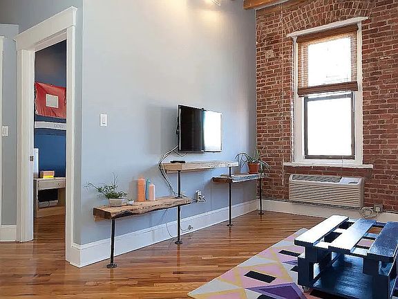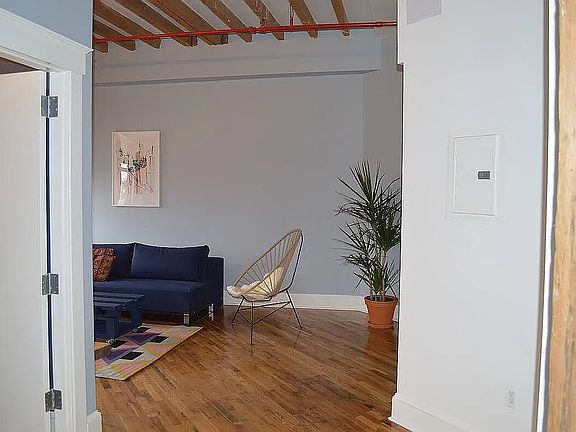 Gorgeous 1br loft in converted Cork Factory. The loft features high ceilings, exposed brick and wood beams, and hardwood floors throughout. There is a large kitchen with stainless steel appliances including dishwasher. The layout features an eat in kitchen area, ample closet space, large living room, and separate bedroom. The building has a freight elevator for use by appointment and a laundry room in the basement. Located 2 blocks to Mcgolrick Park and approximately a 10 minute walk to the Nassau G train station and Mccarren park. Great area!
