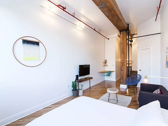 Authentic Brooklyn Loft w/ high ceilings, exposed brick, and modern kitchen! Near Mcgolrick Park. Come enjoy this bohemian chic Studio Loft apartment in an authentic 100 year old converted Brooklyn factory. The loft features a large open floor plan with separate alcove kitchen featuring stainless steel appliances including dishwasher. Spacious bathroom with a large shower. The building has a laundry room on-site. Located on a quiet industrial street just steps from the more residential area of Greenpoint and 2 blocks from the lovely McGlorick Park where there is a farmers market every weekend. The loft is walking distance from many trendy restaurants and bars, one block to the bus, and an 8 minute walk to the Nassau G train. Also a short walk to most of the film and production studios in Greenpoint. Close proximity to North Williamsburg, and an easy commute and short cab ride to most areas of Manhattan.