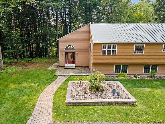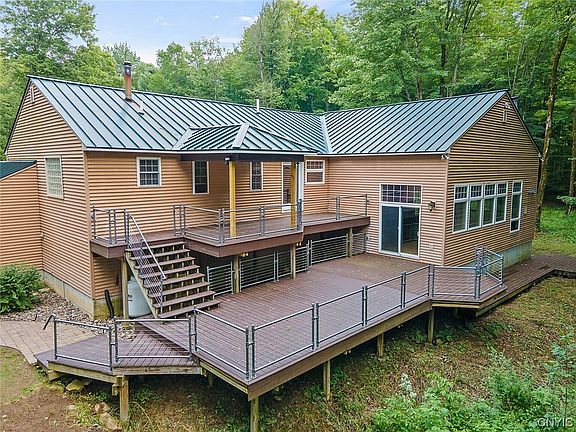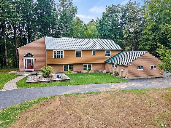 This spacious home is nestled on a 38 acre wooded lot! With 4 bedrooms, 3 baths and 3 car garage, there is plenty of room to roam inside and out! Also included is a 30x40 pole barn. The updated cherry kitchen with expansive leather granite counters, backsplash, island w/breakfast bar, stainless steel appliances, which includes a 40" ILVE gas stove, overlooks the great room with floor to ceiling stone fireplace, built-in shelving and plenty of windows to enjoy the view! Love being outside? Enjoy the view from the new 3 level Trex deck! The primary bedroom has a large wic and bath with soaking tub. The main bath has been remodeled with a soaking tub, granite countertop with maple cabinet and cork flooring! Moving to the lower level you will find a unique and inviting space with a remodeled full bath, bedroom, possible office or playroom and a large open space that could be a gym, rec room or anything you want! From this level the spacious mudroom with 3 storage closets leads to the garage. The tax records state 2,300 sq. ft. which does not include the finished lower level. The sq. footage was measured by the seller. Newer metal roof and new stone walkway from lower level deck.