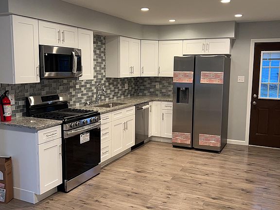 Welcome to this beautifully renovated 3 bedroom, 1-1/2 bath home featuring brand-new siding and HVAC. This home features an open floor plan with beautiful new hardwood flooring throughout the main areas. The living room is highlighted by a wood-burning stove with a veneer stone backdrop. The kitchen features brand-new marble countertops, updated lighting fixtures, and newer stainless appliances. Down the hallway, you will find 3 bedrooms all featuring new hardwood floors and freshly painted walls. The renovated full bath features a brand-new tile tub/shower area, tile flooring, a new vanity, and new lighting fixtures as well. The basement is newly finished with a new carpet and washer and dryer hookup. A few extra bonuses include a new blacktop driveway, a new deck in the backyard, and an updated garage. This location is Prime with easy access to transportation, highways, shopping, schools, and parks. Schedule a tour today.