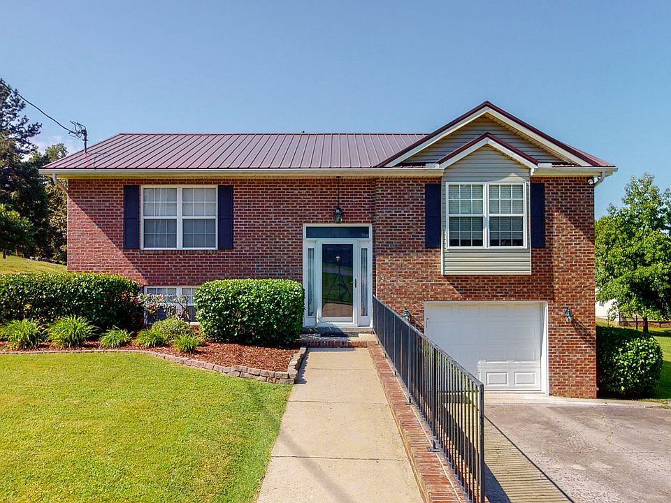 Beautiful split level home with 4 BR 2 BA large master with private patio area, new metal roof 7/2020, new front storm door, new back door on garage coming. Home has hardwood floors, new refrigerator, and microwave, new stove coming, deck off the dining area, den with lots of windows to let sunlight in, 1 car garage with concrete driveway.