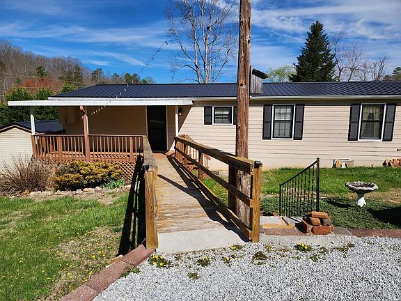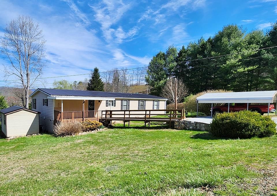 You will absolutely love this 3 bedroom 2 bath manufactured home that sits on 2.69 unrestricted all usable acres, that has a permanent block foundation. It has been lovingly taken care of over the years so it is in great shape and move in ready! Inside the home offers an open floor plan with vaulted ceilings in the oversized living room. The kitchen has plenty of storage and counter space and features an island & dining nook, plus a formal dining room. Enjoy one-level living with a primary bedroom boasting an ensuite bath. Two more bedrooms and a full bath plus a mudroom with laundry and pantry spaces just off the spacious kitchen, complete the layout. High-speed cable internet is available too. Relax on the covered back porch with a built-in bar that is ready for entertaining friends & family. Outside, the big yard has a nice year-round stream, which is great for gardening, pets, and kids, or having some chickens. There are mature flowering trees on the property as well. Easy access off a state-maintained road, with room to park an RV. A storage building with a workshop and a 2-car carport is included, along with a wheelchair ramp for easy access. Don't miss this home.