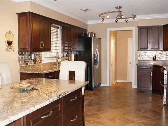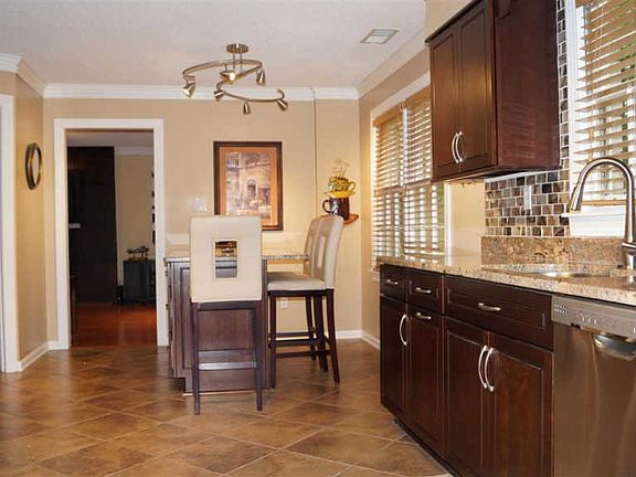 This house is SHARP! Gorgeous granite, stainless appliances, NEW cabinets throughout, a unique stone wall in the great room, updated fireplace! 4 bedrooms, 2.5 baths with master up. Large laundry room, plus a 3 CAR GARAGE. Painted brick on a tree-lined street. Large fenced back yard with a hot tub.