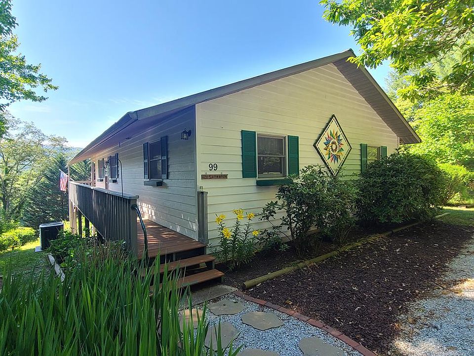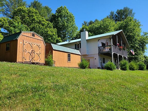 Looking for a move in ready home in a quiet unrestricted neighborhood close to town with nice mountain views at an affordable price, then look no further. Has MORRIS BROADBAND HIGH SPEED INTERNET AND GREAT CELL SERVICE TOO!. Nice Layout with an open floor plan, 2 Bedroom 2 Bath on the main level and a Bonus Room in the basement with a 1/2 bath, which is currently being used as a craft room, but could be a family room, or extra sleeping area. Rock your cares away on the big covered porch while taking in the long range mountain views. Recent upgrades include in 2017 a new metal roof and skylights plus new kitchen appliances, & a new hot water heater in 2018. The home has a great Setting as it sits on 2 lots, totalling 1.13 private acres, which is gently rolling with large blueberry bushes and lots of flowers and has plently of room for a big garden and/or area for pets or Chickens. There is a 20 x 10 workshop with electric, plus 2 more sheds and a carport. Home comes partially furnished too. A must see.