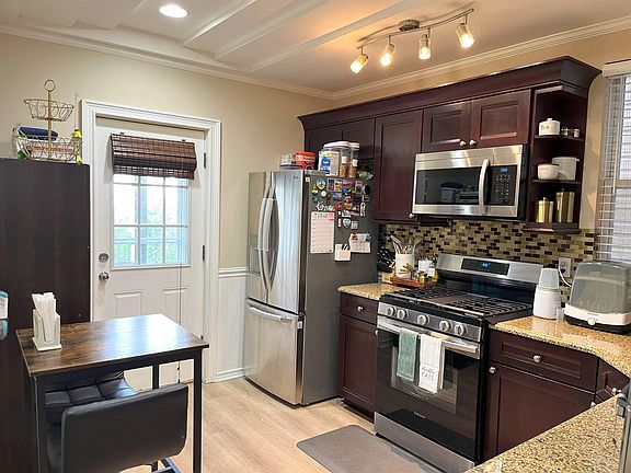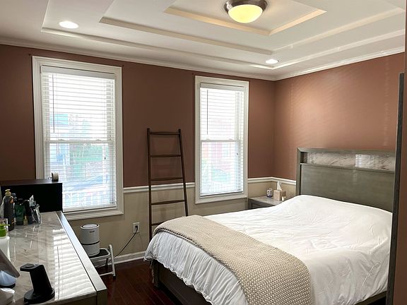 PRICE REDUCED! This beautiful and modern first floor two-bedroom apartment features central heating and cooling, elegant wainscoting and coffered ceilings, an updated kitchen with granite counters, spacious cabinets, LG French-door fridge, Samsung gas oven/range, vented microwave and dishwasher, a bright and tastefully designed bathroom with a tub, a spacious and sunny primary bedroom with a well-proportioned closet, and an inviting second bedroom. It also offers shared basement laundry and shared backyard access. Enjoy living on a quiet residential street conveniently located near many Bayonne businesses, schools, stores, restaurants, as well as the 16th street park and city pool. Multiple bus lines are within a short distance as well. 8th street Light Rail is approx 5 min away for an easy commute to Downtown Jersey City, PATH to NYC, and Hoboken. Off-site parking may be available for rent nearby. No pets, sorry. Basement storage available for an additional fee.
